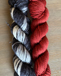 Yardage:  2 balls each of two colors of Fingering 16 OR 2 Fingering and 2 RARE (multi) each skein with 220 yards (50 g)